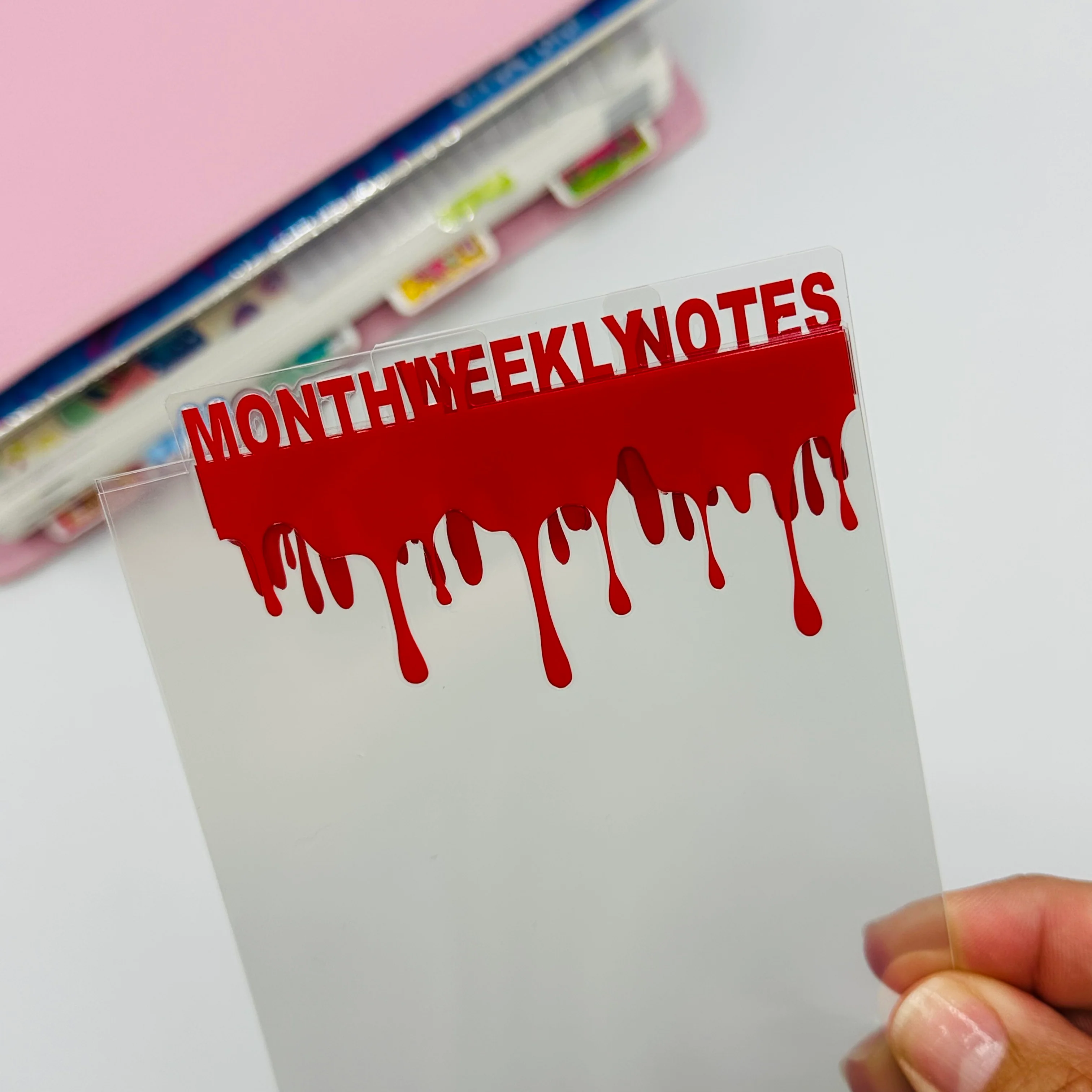 Set of 3 TOP TAB planner dividers with a drip border, in your choice of vinyl color. Also choose between a standard or whimsical font for you tab words.