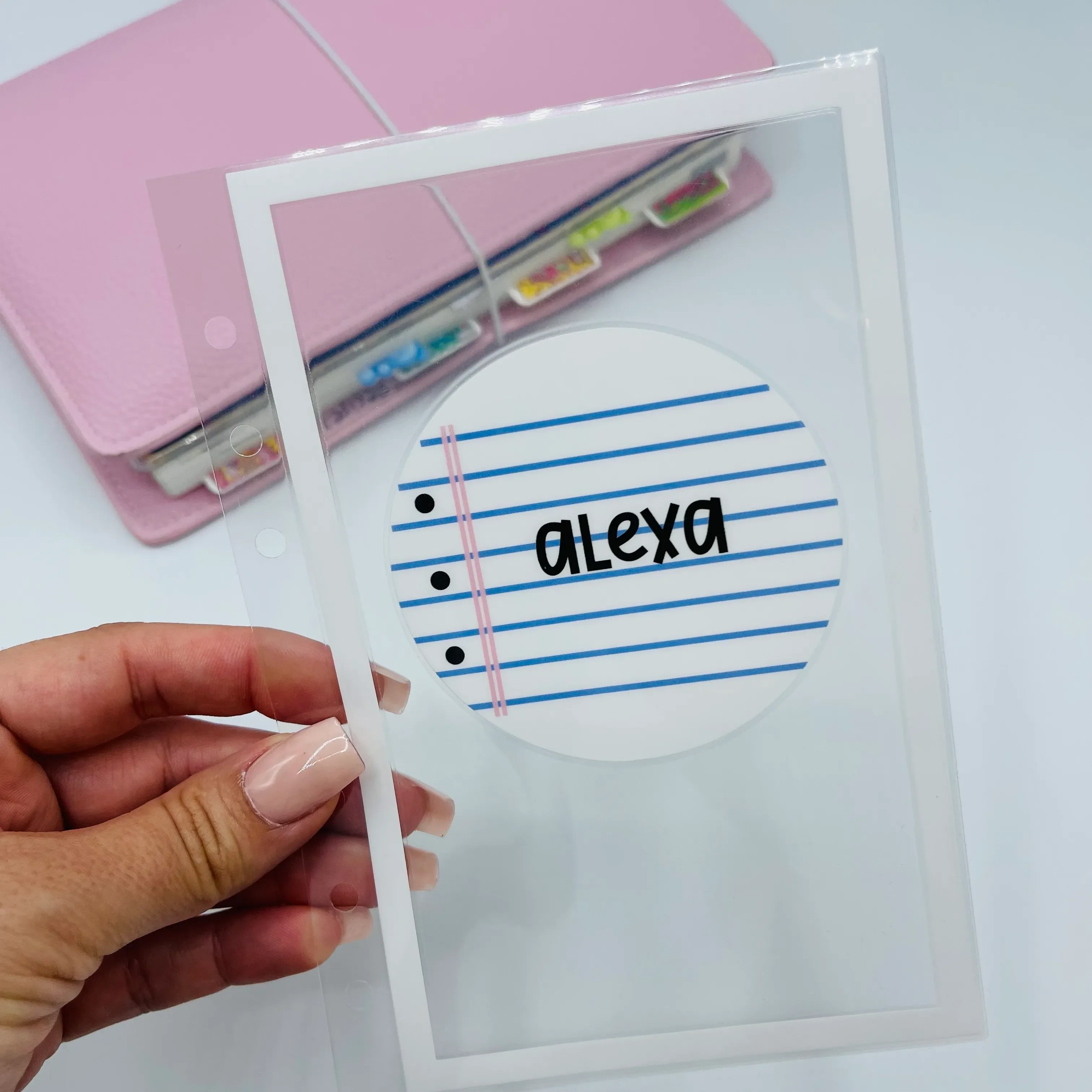 Planner dashboard with a notebook paper design in the middle. Choose your border color and word in the middle.