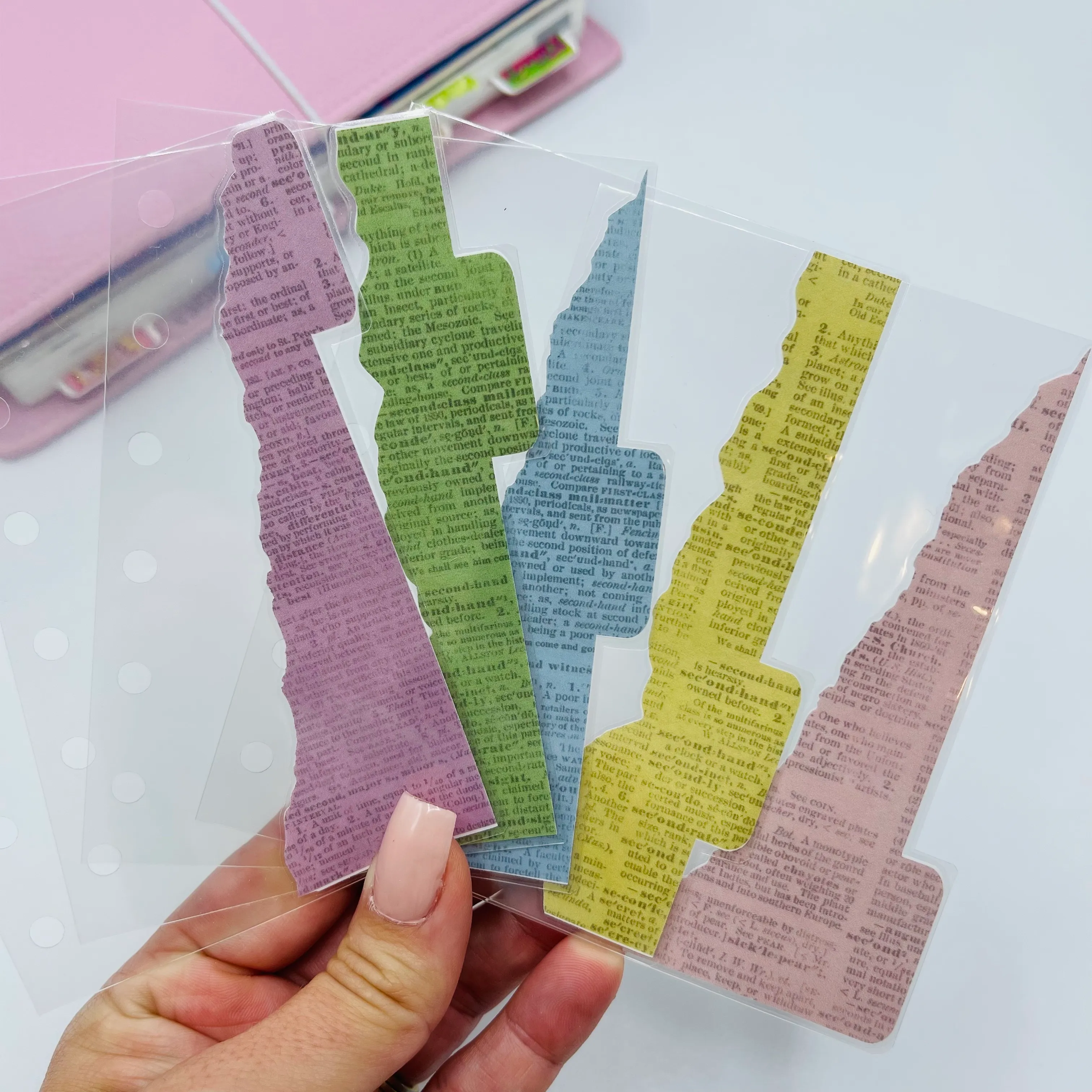 Set of 5 TOP TAB planner dividers with a ripped vintage paper design. Customize with your choice of font with custom words or plain tabs, and your paper color choice.